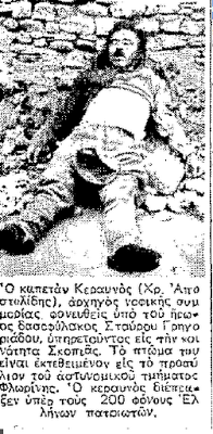 87) το κορμί του καπετάν Κεραυνού ( Χρ. Αποστολίδης) εκτίθεται στον προαύλιο χώρο του κτιρίου της χωροφυλακής Φλώρινας το 1948